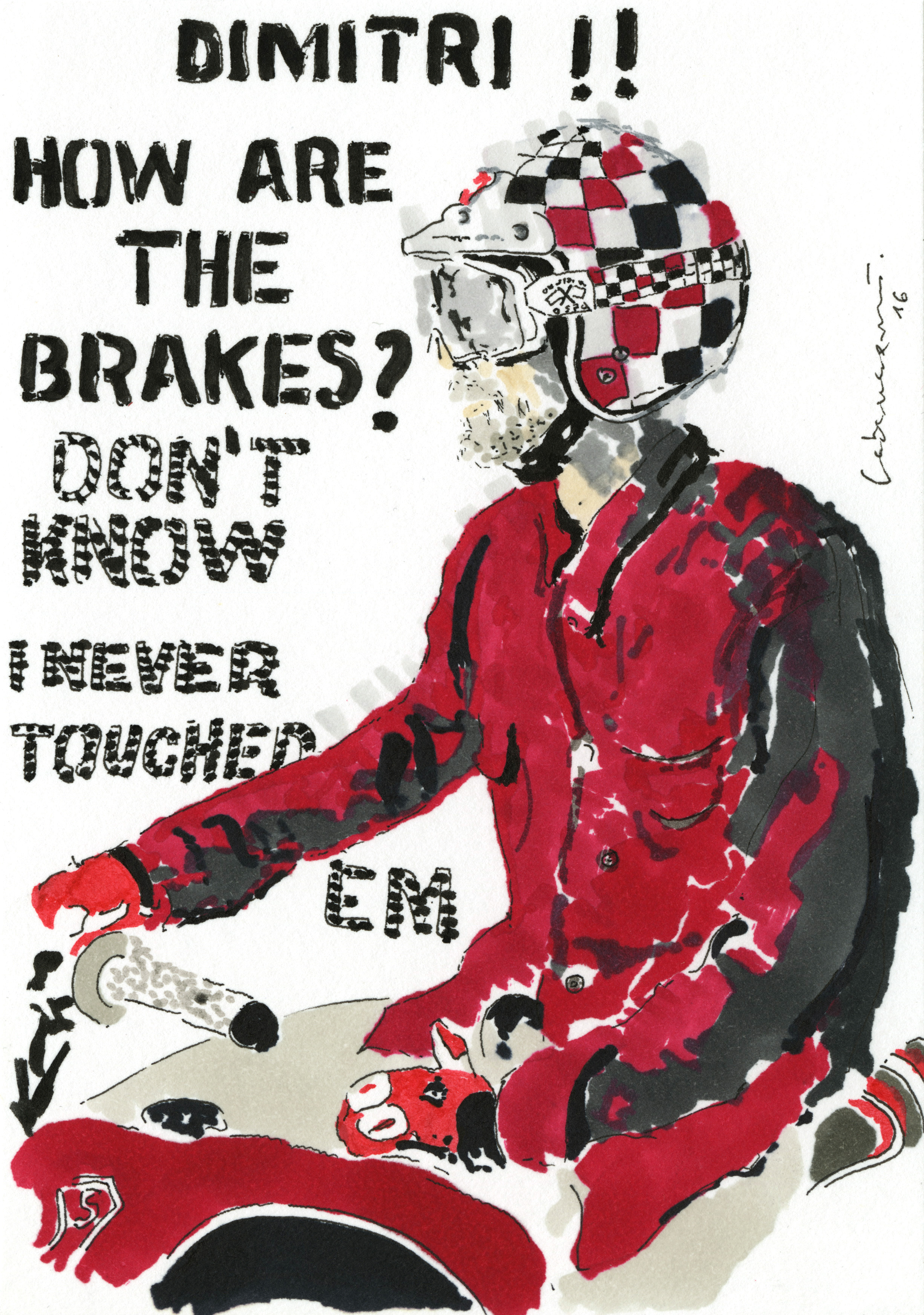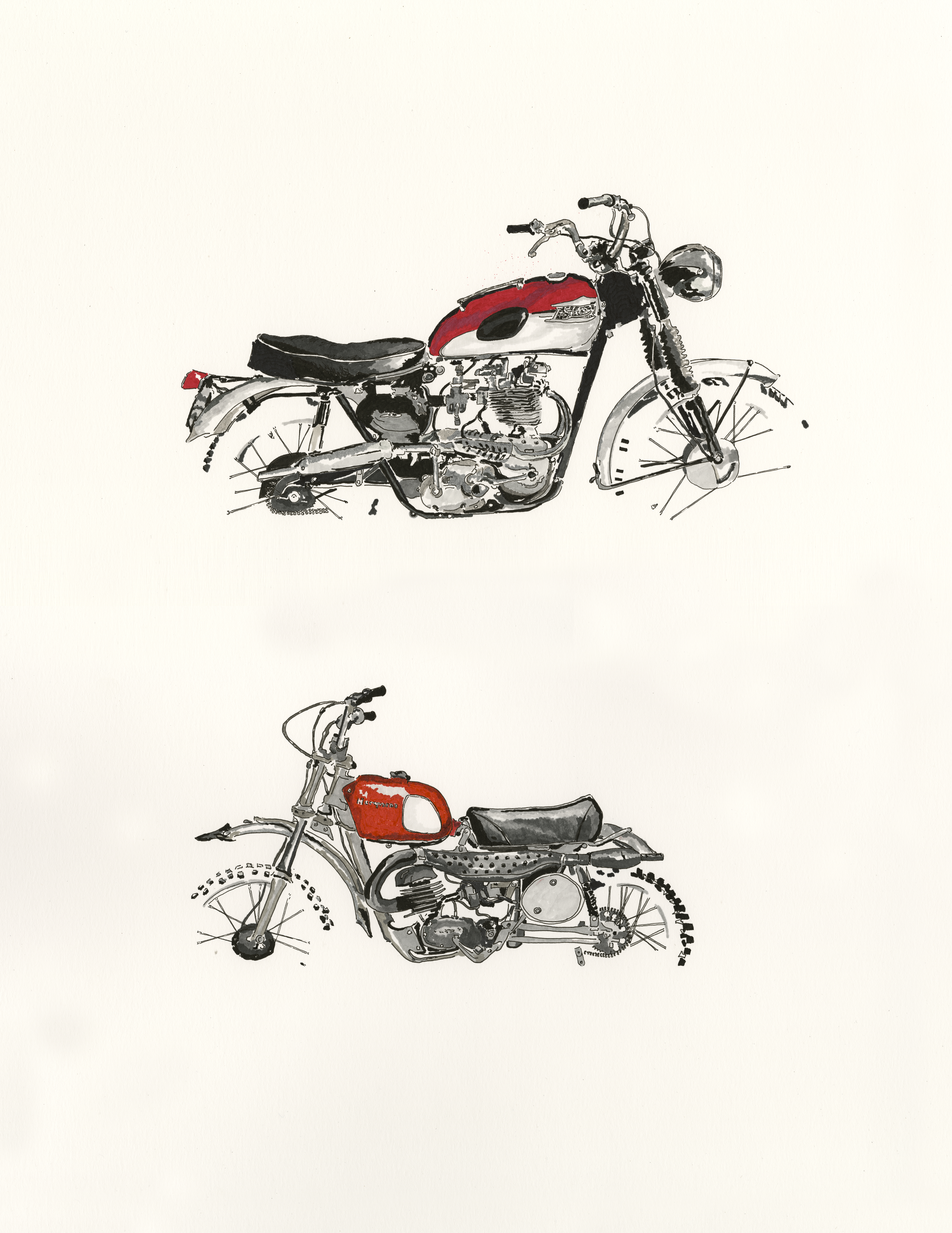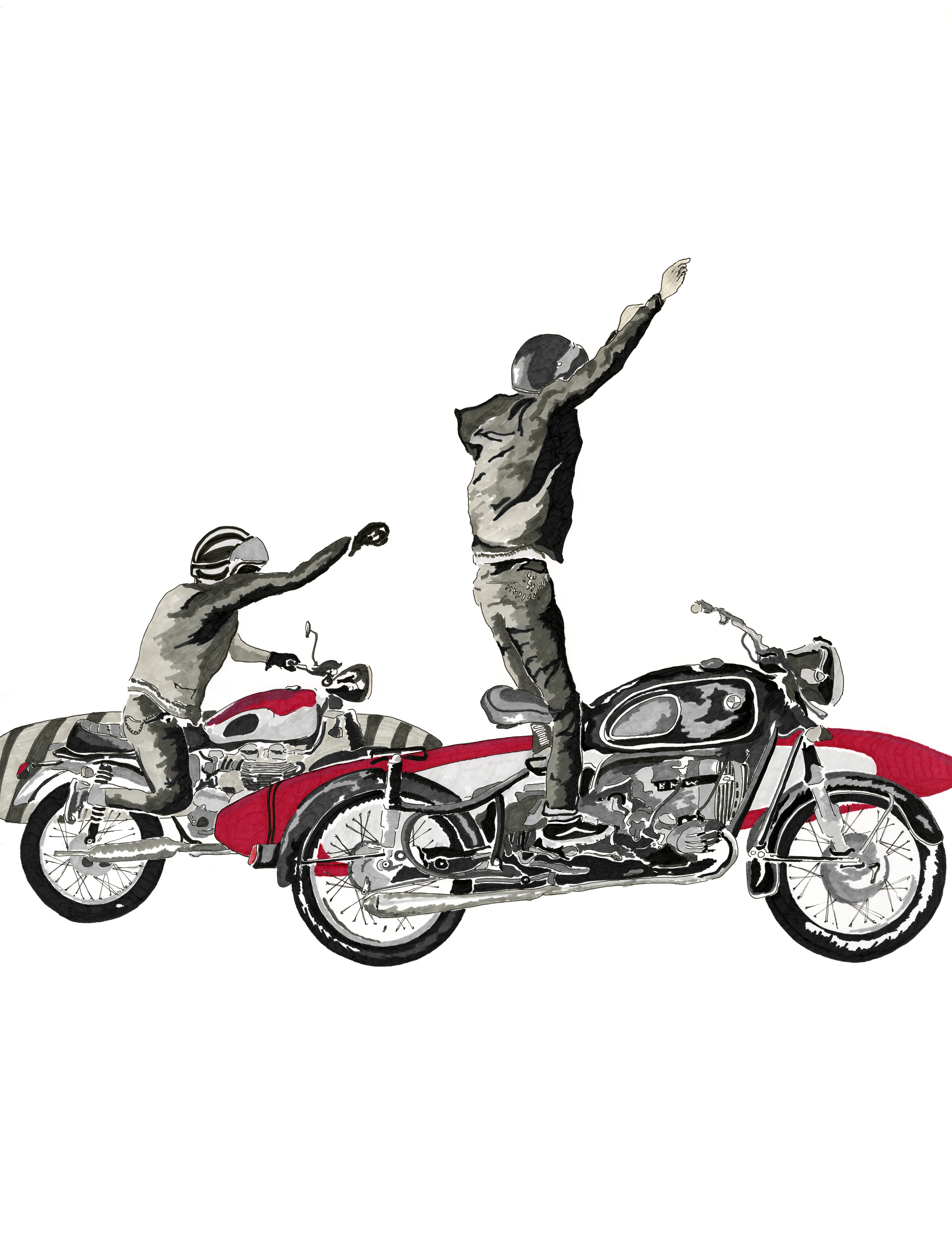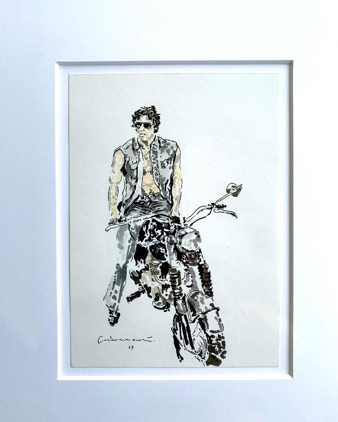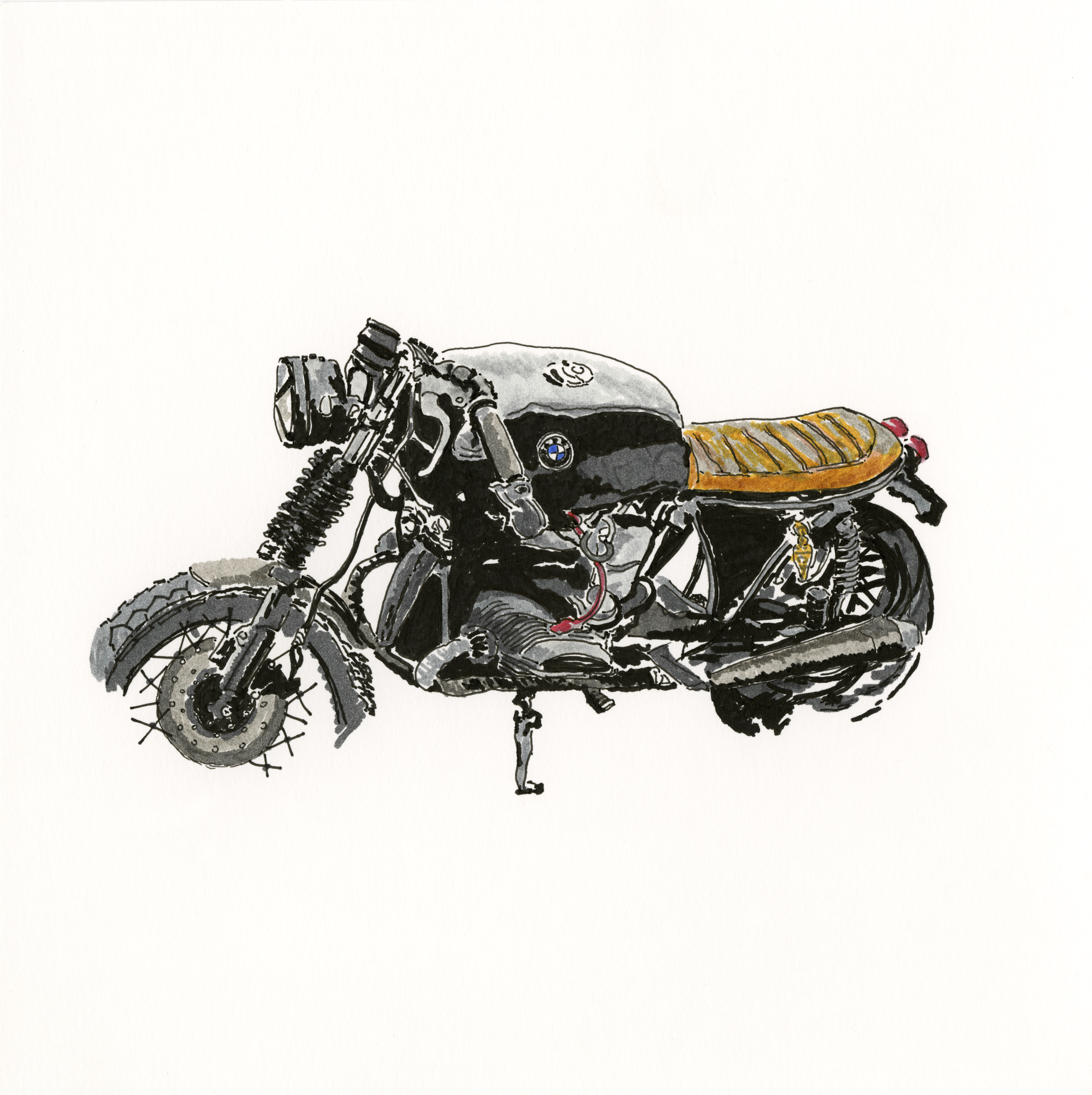 Self-taught ink artist Cabanaem‘s improvised drawings fuse lifelong loves of motorcycles and music. Having been exhibited worldwide and with large acclaim from international musicians and bikers, Cabanaem still chases those quiet late-night drawing sessions, where only pen, paper, and good music are needed.