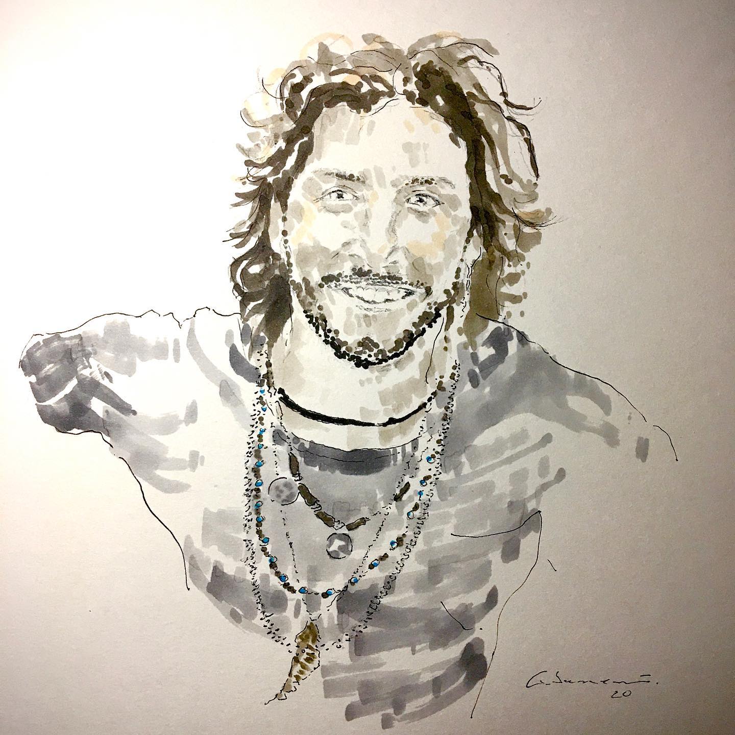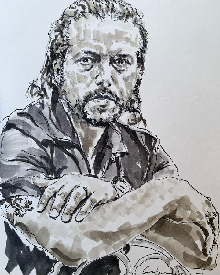 Self-taught ink artist Cabanaem‘s improvised drawings fuse lifelong loves of motorcycles and music. Having been exhibited worldwide and with large acclaim from international musicians and bikers, Cabanaem still chases those quiet late-night drawing sessions, where only pen, paper, and good music are needed.