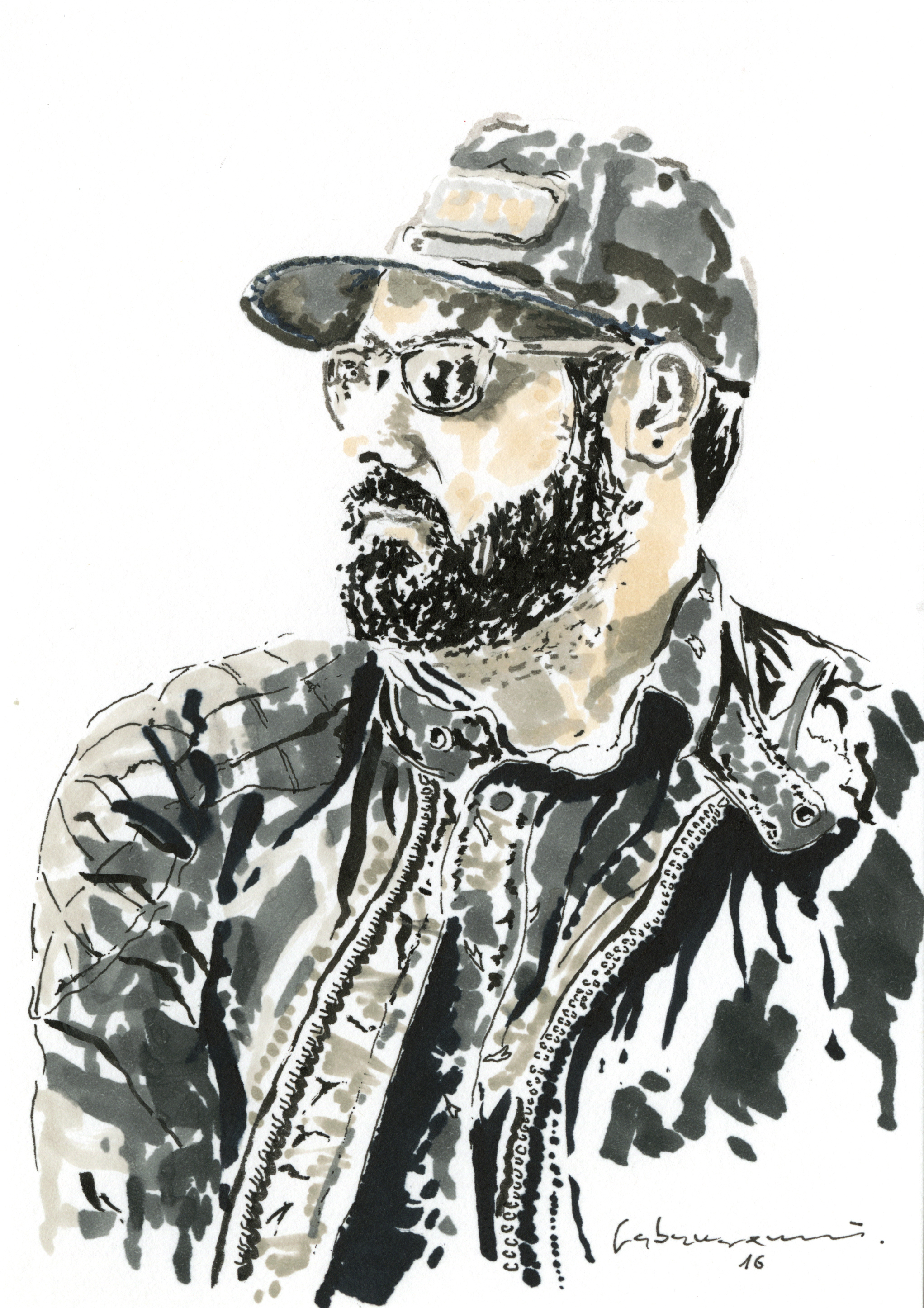 Self-taught ink artist Cabanaem‘s improvised drawings fuse lifelong loves of motorcycles and music. Having been exhibited worldwide and with large acclaim from international musicians and bikers, Cabanaem still chases those quiet late-night drawing sessions, where only pen, paper, and good music are needed.